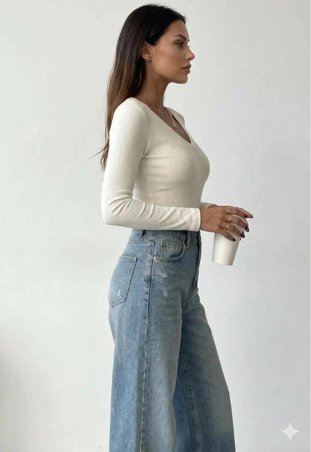 Kadın Uzun Kollu Yarım Balıkçı Yaka Omuzu Açık Bluz
