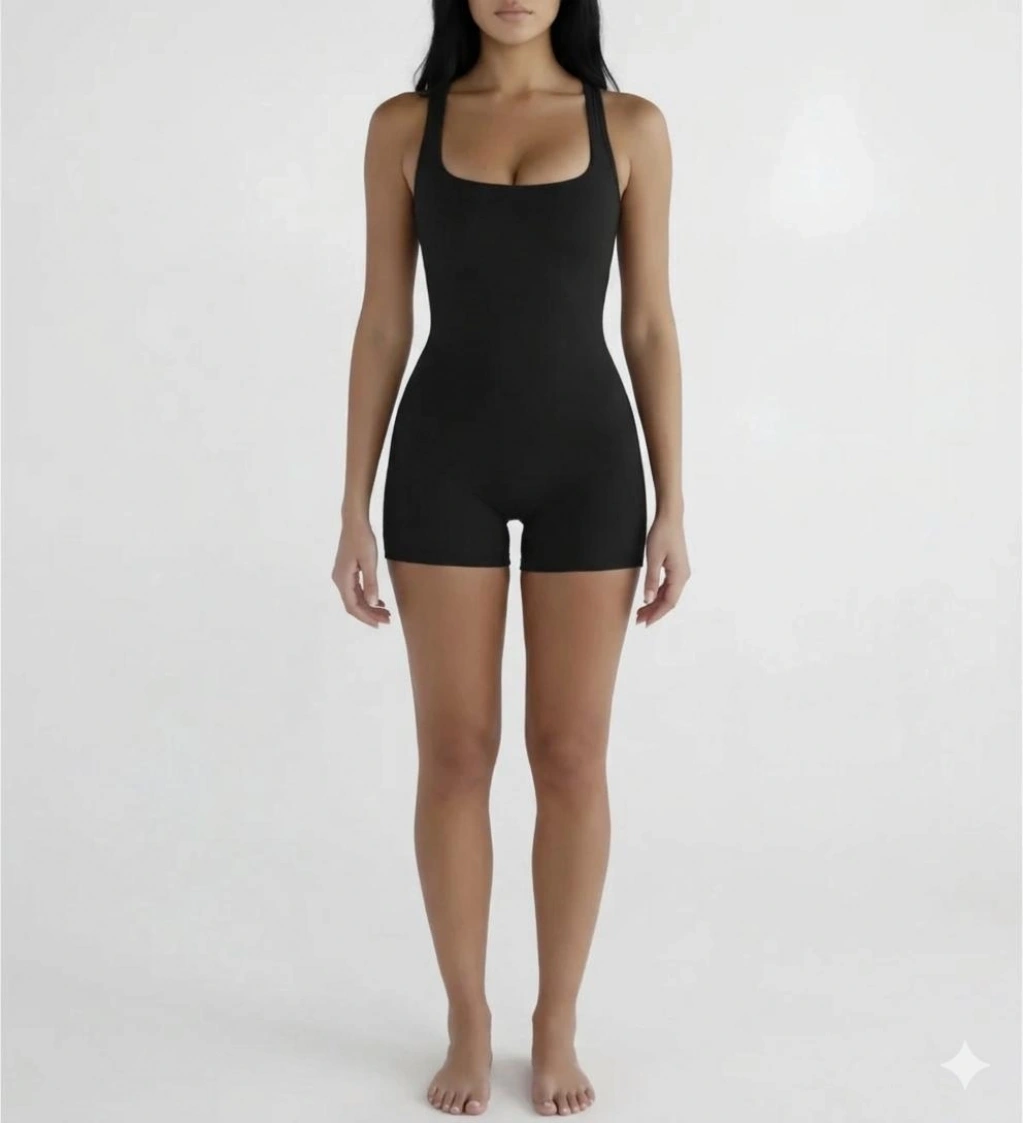 asaletini modern bir kesimle buluşturan bu shorty tulum, gardırobunuzun en joker parçası olmaya aday. Vücudu nazikçe saran yapısı ve kare yaka detayıyla hem sportif bir enerji yayıyor hem de çabasız bir şıklık sunuyor.