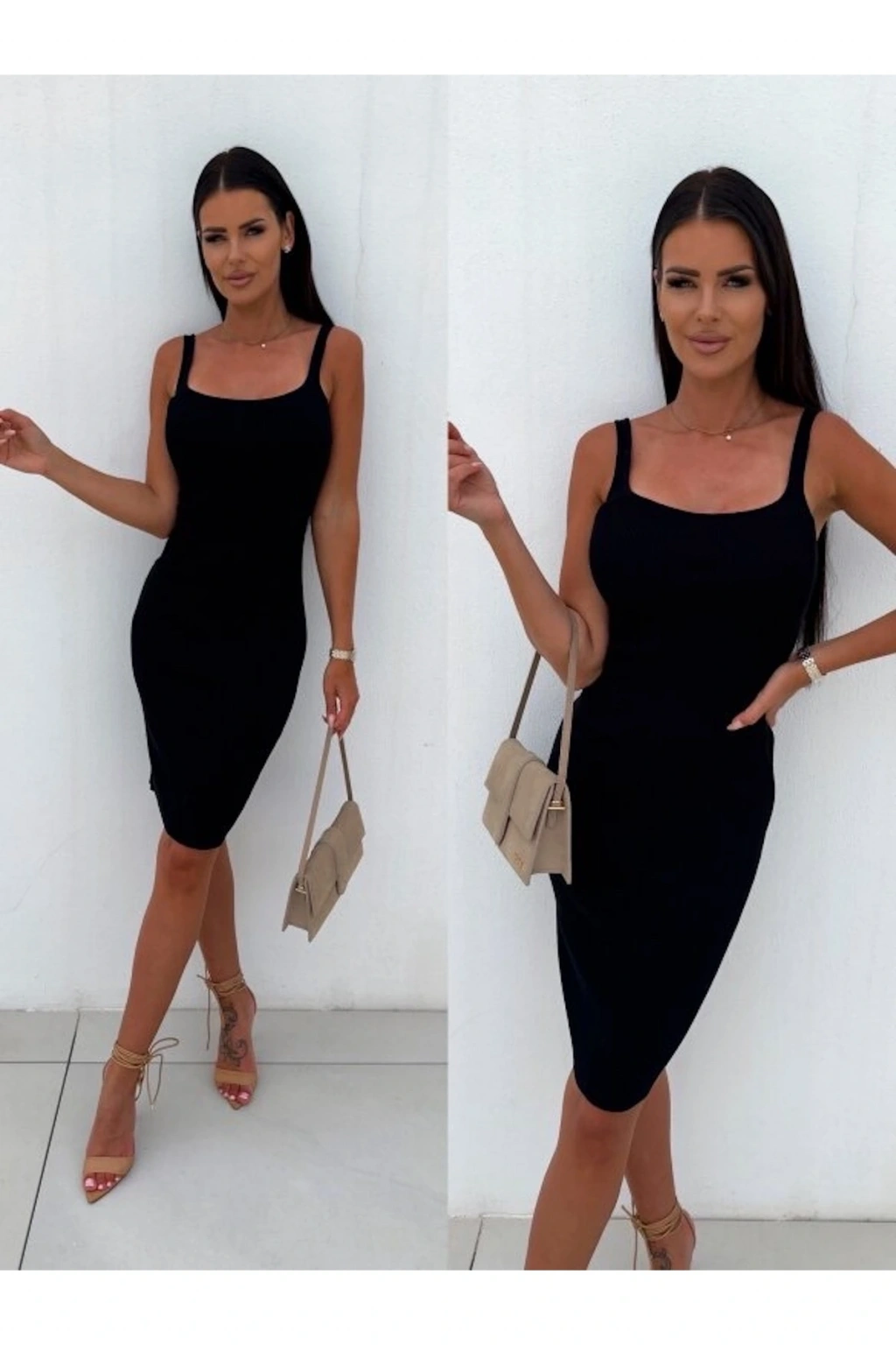 Siyah Askılı Elbise Kaşkorse Diz Üstü