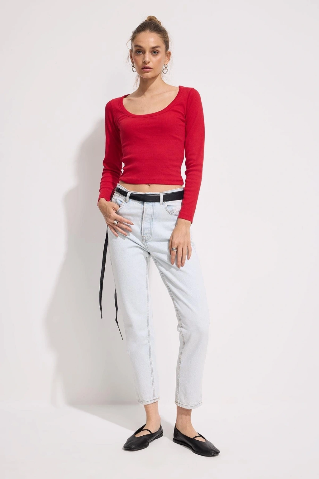 Düşük Omuzlu Asimetrik Bağlama Detaylı Bluz